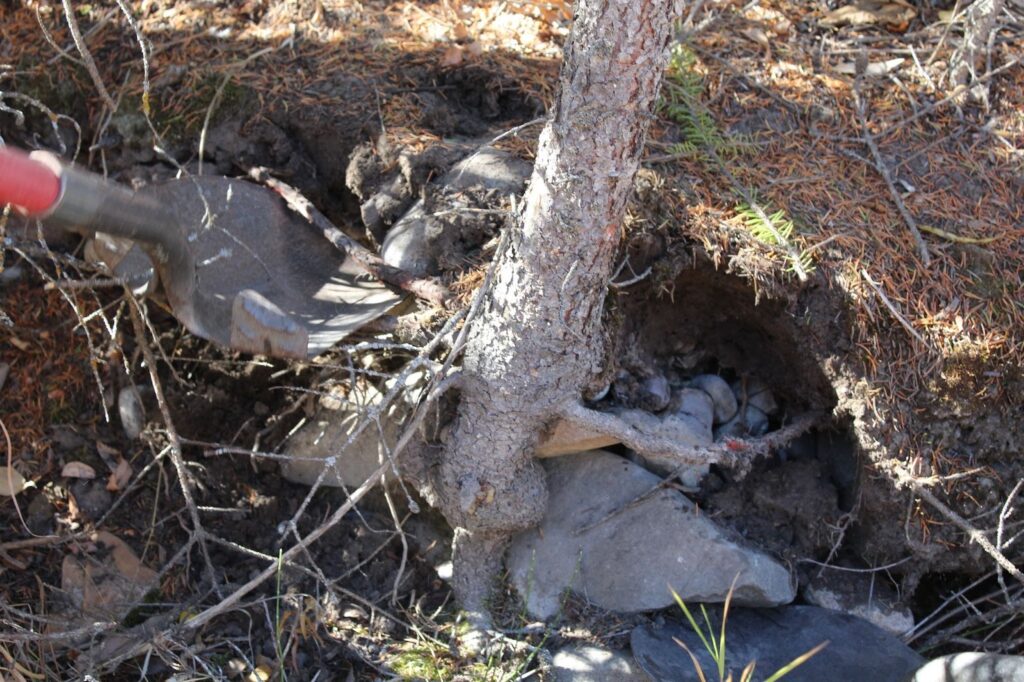 But according to Cooper, these rings don’t tell the full story. These trees have been cut by beavers. They’ve been knocked over and buried by rockslides in this narrow valley. The stem itself doesn’t reflect the tree’s true age. Cooper is looking for the very oldest part of the tree, called the pith. Once that is exposed, researchers can compare the cross section to the Crystal’s water record. Cooper says they’ll go year by year, and see whether each ring correlates with a wet or dry year.