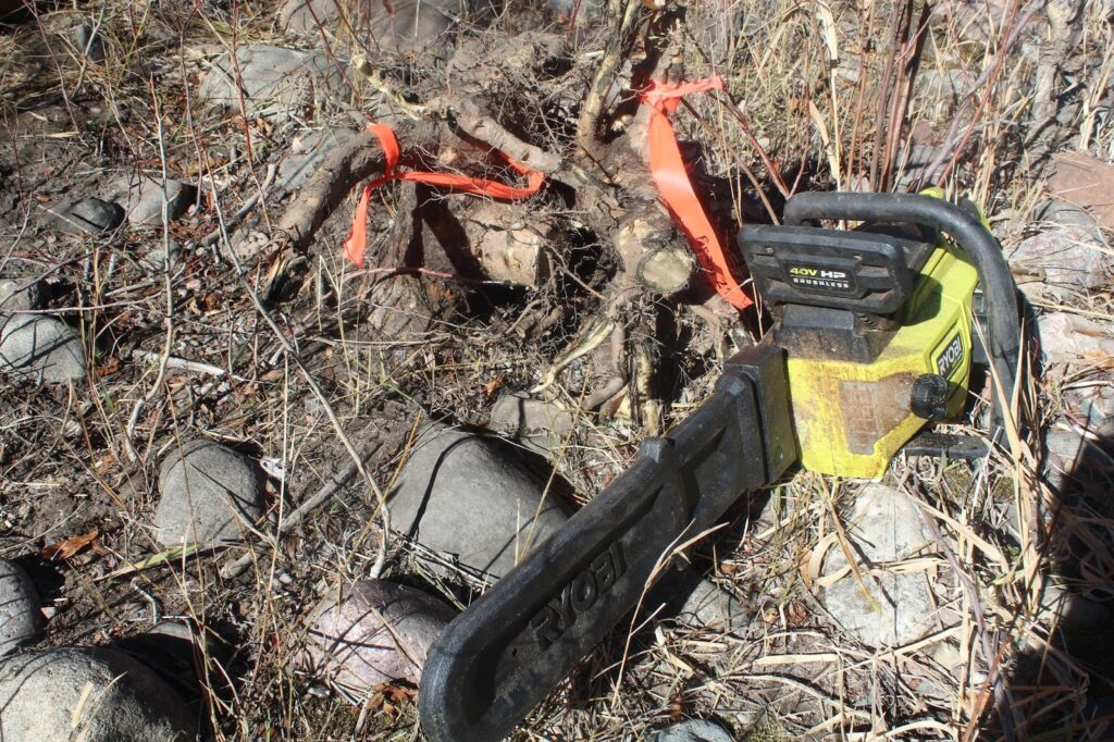 “OK, our first victim,” Cooper said as he examined the roots and directed volunteers where to start digging.