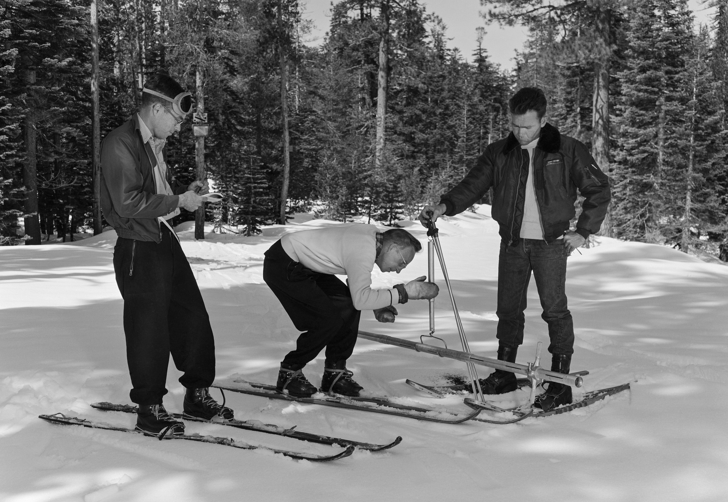 Scientists and water managers, aware of the high stakes, began formally measuring the snowpack to make water forecasts more than a century ago. They selected key locations in the high country, plunged hollow metal tubes into the snow and weighed the extracted cores to calculate the water content—a technique still used extensively today.
