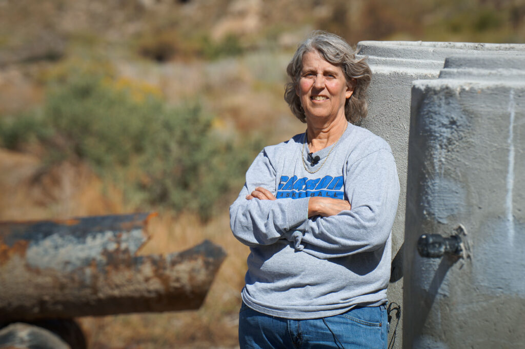 The project to replace Helper’s leaky water pipeline cost more than twice the town’s annual budget, said Mayor Lenise Peterman, seen here at the project site Oct. 1, 2025. The water-saving project might not have happened without millions in federal funds. (David Condos)