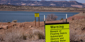 “Abiquiu Lake water levels are unusually low resulting in additional unseen underwater hazards,” according to the U.S. Army Corps of Engineers, which manages the lake. “Boaters are advised to use extra caution when navigating the reservoir with motorized vessels.”